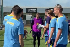 巴薩門將什琴斯尼迎來(lái)36歲生日,今日訓(xùn)練之前,隊(duì)友們列成兩排,以拍打儀式為他慶生。
