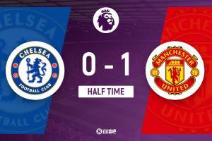 上半場傷停補時5分鐘,半場結束,切爾西暫0-1曼聯(lián)。