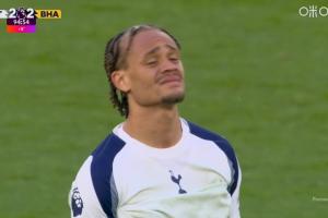 體育資訊04月19日訊 熱刺vs布萊頓,魯特爾破門(mén),布萊頓第94分鐘絕平熱刺!鏡頭隨即給到西蒙斯,這場(chǎng)世界波+助攻的他非常痛苦!
