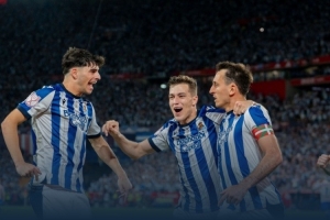 體育資訊4月19日訊 國王杯決賽,皇家社會點球大戰(zhàn)擊敗馬競,捧起冠軍獎杯。