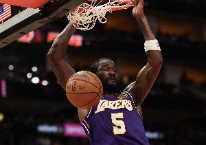 上半場(chǎng)比賽,湖人13籃板,太陽(yáng)28籃板。