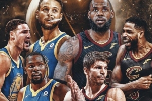 2018年總決賽宣傳海報(bào)中,勇士是杜庫湯,騎士則是詹姆斯、TT和科沃爾。